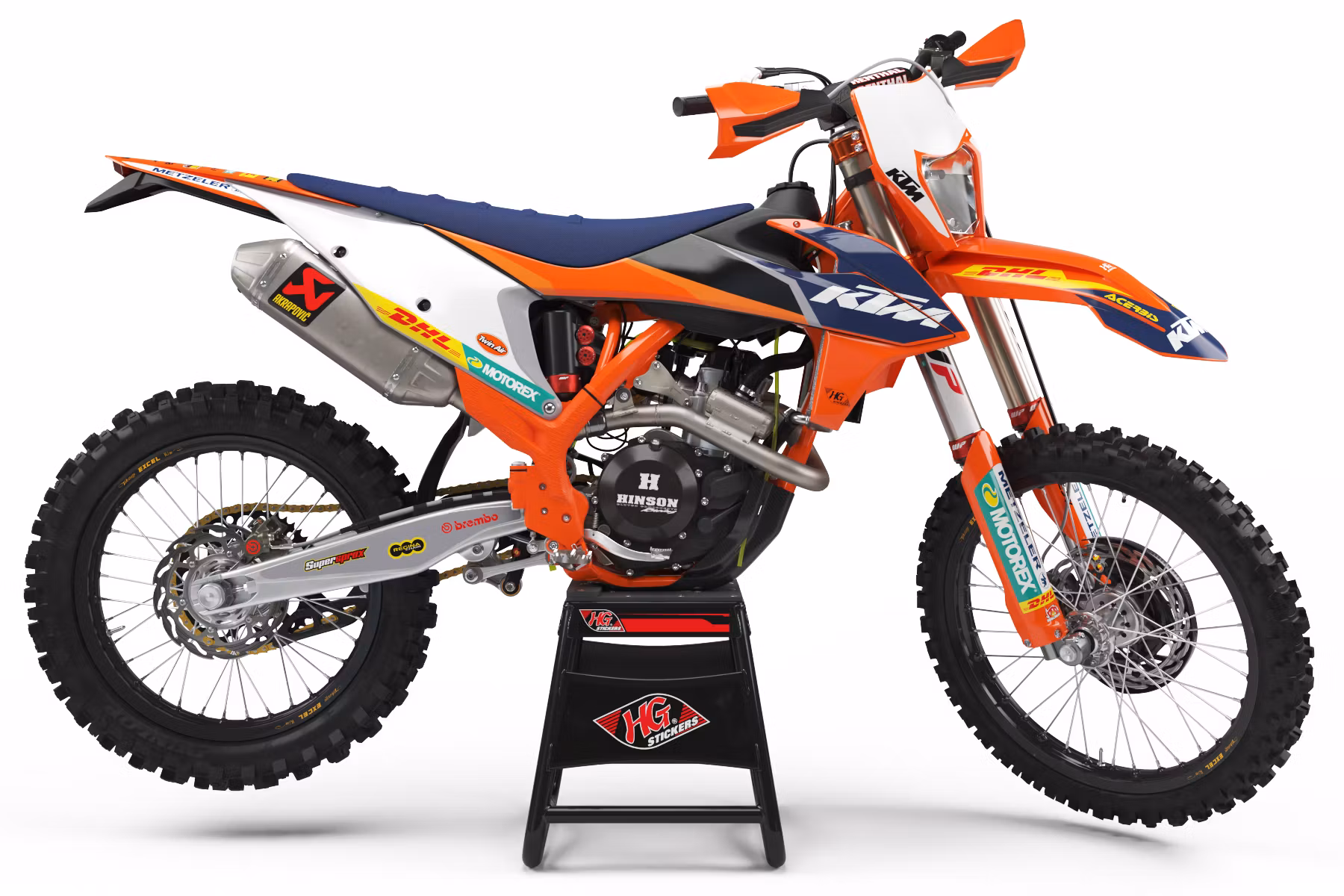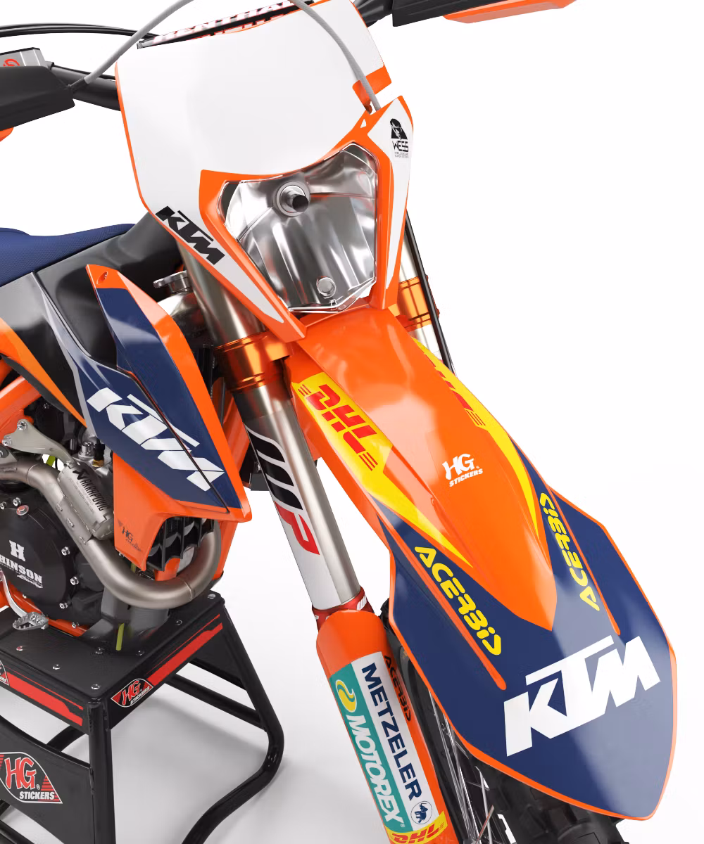 Shop KTM factory replica graphics kits inspired by pro race teams. Premium motocross and enduro designs built for perfect fit, durability, and performance.